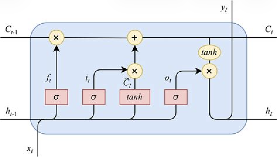 如上图展示了长短期记忆网络(LSTM, Long Short-Term Memory)单元的内部结构及信息流向。