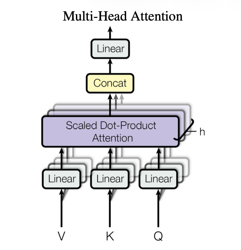 $$\text{Attention}(Q,K,V) = \text{softmax}\left(\frac{QK^\top}{\sqrt{d_k}}\right)V$$
