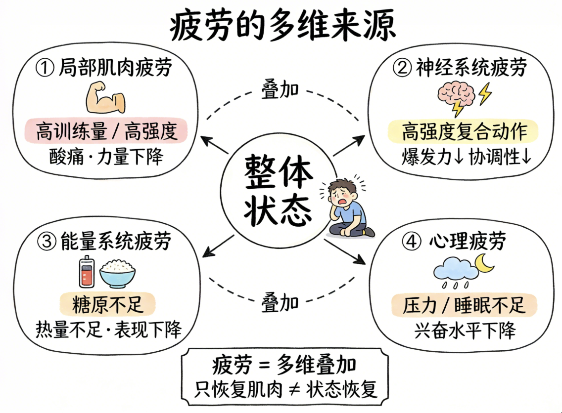 上述因素构成训练刺激的主要来源。值得强调的是,刺激本身并不等于成长。刺激仅仅向机体发出“需要适应”的信号。如果缺乏后续的恢复与资源支持,这一信号无法转化为能力提升。